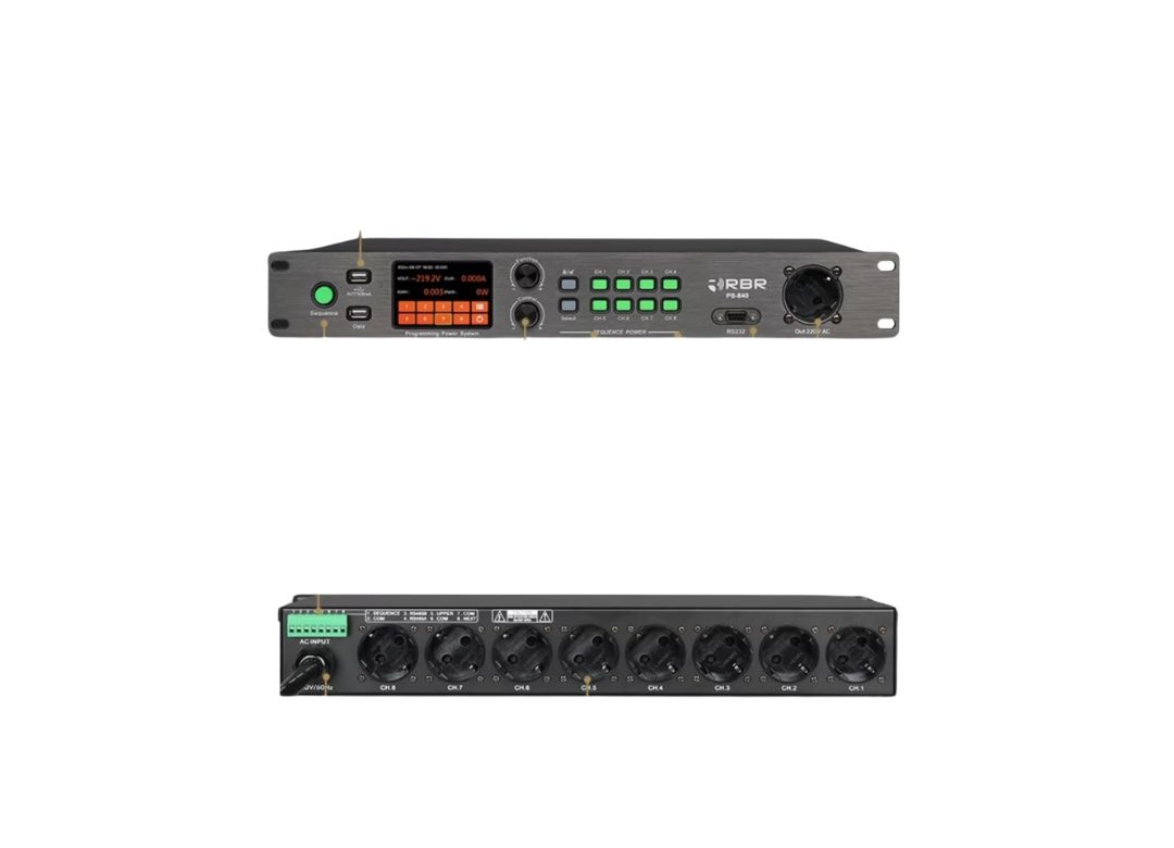 No worries! Now you can easily set your over-voltage and under-voltage limits for maximum equipment protection.” And other great features with the Digital PS840 power sequencer.Equipped with touchable 3.5 Inches and pixel of 240*400 colorful screen. Fashion design with brushed aluminium panel, and 1.5U height. The screen shows the current voltage, date, time, state of each channel (on/off)
